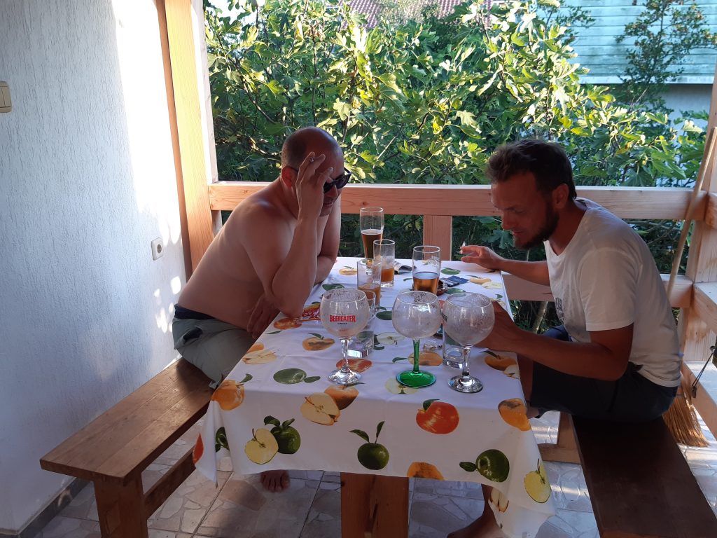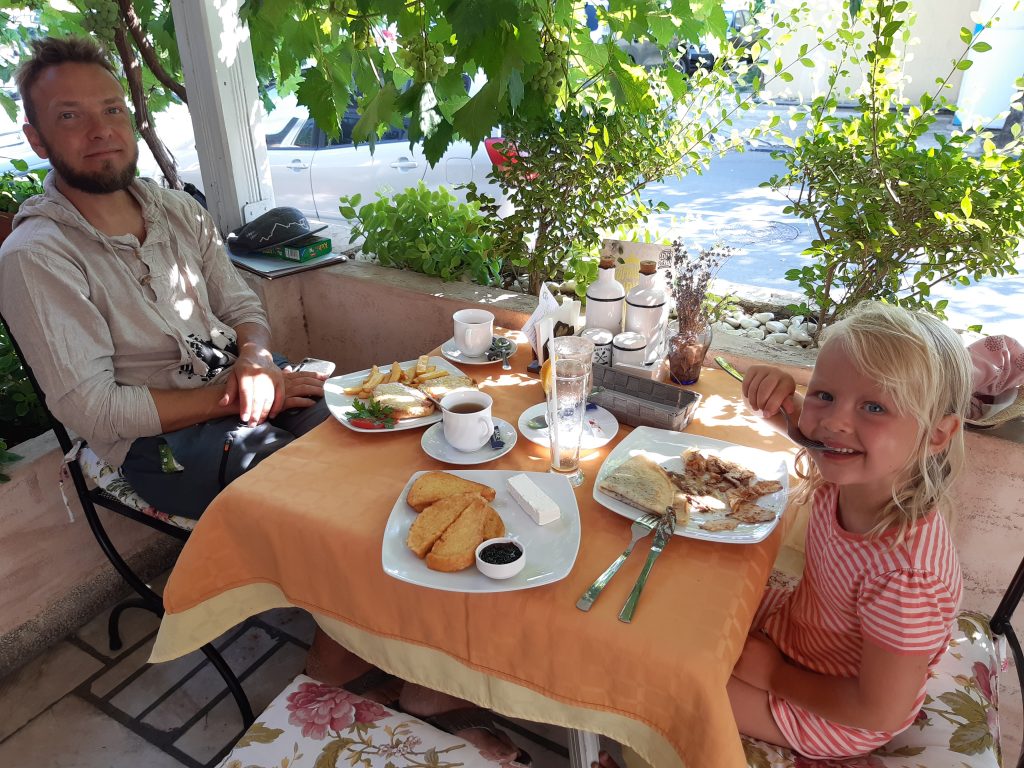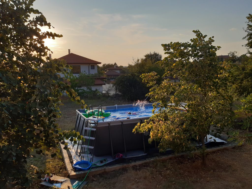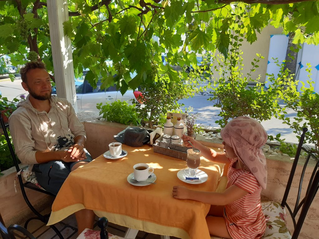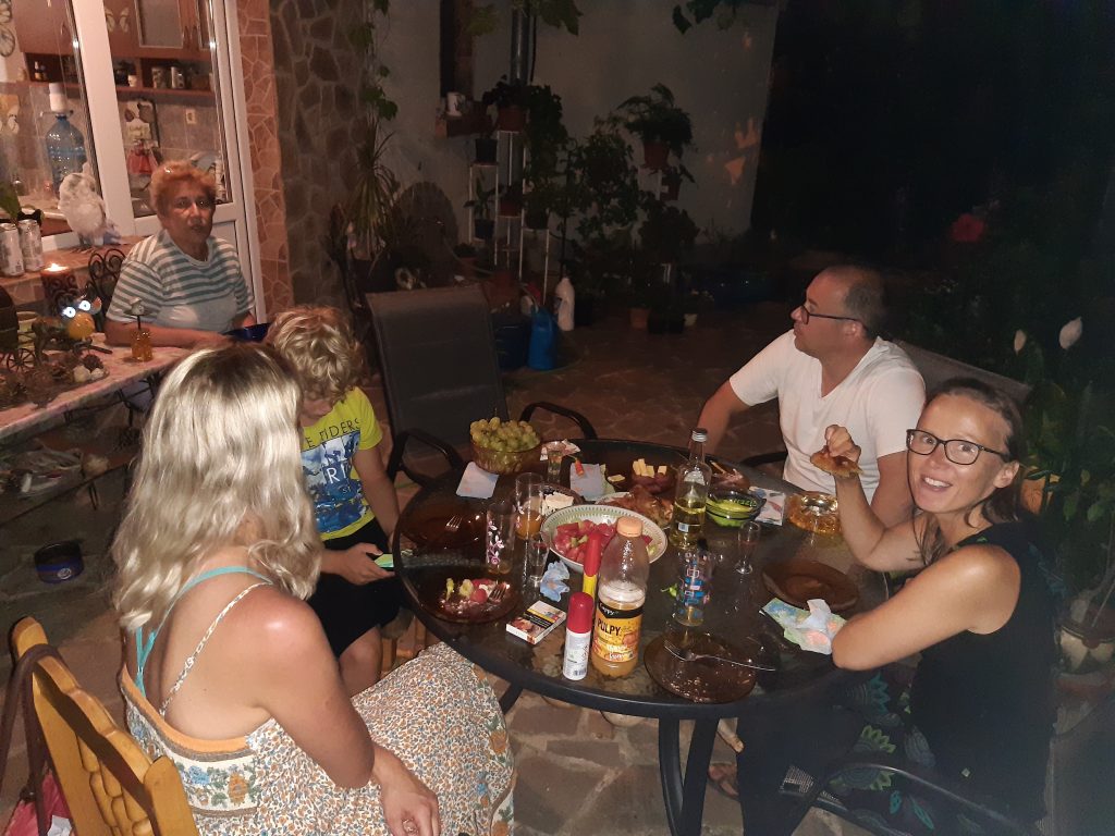 Gegen 17.30 Uhr trafen wir dann bei Alex, Ariane, Milo und Iva im Dörfchen Vaselie ein. Alex ist gebürtiger Bulgare und mit 11 Jahren nach Deutschland umgezogen. Jan und Alex sind nun mittlerweile seit über 20 Jahren befreundet, schafften es aber in den letzten Jahren nicht so häufig intensiv Zeit miteinander zu verbringen. So ist die Freude bei allen riesig und mit Ankunft wurde gleich freudig losgeschnattert, getrunken und im Pool geplantscht. Es ist einfach herrlich mal wieder mit vertrauten Gesichtern auf deutsch zu sprechen und sich in einem schönen, gemütlichen Häuschen aufhalten zu dürfen! Obwohl die Kids sich nicht wirklich kennen, nahmen auch sie sofort Kontakt miteinander auf und es ist einfach entspannt 💕.