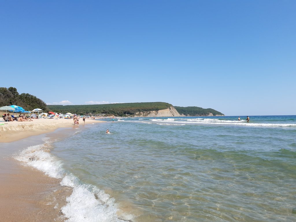 Am Donnerstag sind wir, für unsere aktuellen Verhältnisse, früh am Morgen um 9 Uhr vom Campingplatz in Obzor gestartet. Wir fuhren nicht weit, denn ich wollte gern den als „wild und wenig urbanisiert“ beschriebenen Iraklibeach sehen. Also machten wir dort einen Stopp, frühstücken und planschten eine Runde. Tatsächlich ist dieser Strandabschnitt von recht viel Wald und wenigen Häusern umgeben. Dafür wird er von vielen Zeltlern genutzt und dementsprechend mülllastig ist es überall.