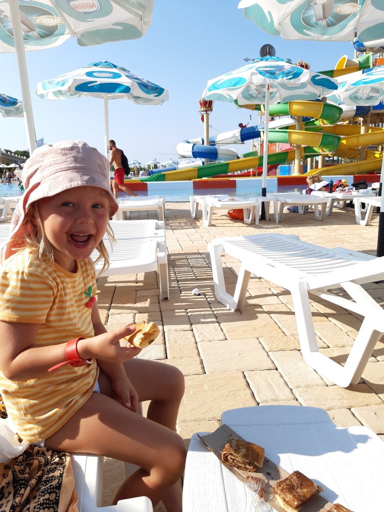 Gestern, am Freitag, checkten wir im Hotel- und Campingresort im Ort ein, sehr zur Freude von Hanni, denn die Anlage ist sehr groß und umfasst mehrere Pools, verschiedene Rutschen sowie einen großen Spielplatz.