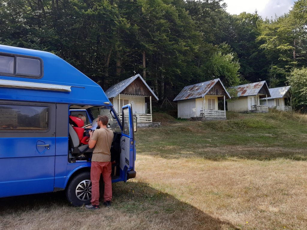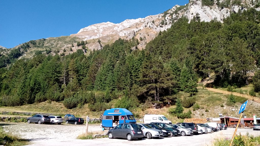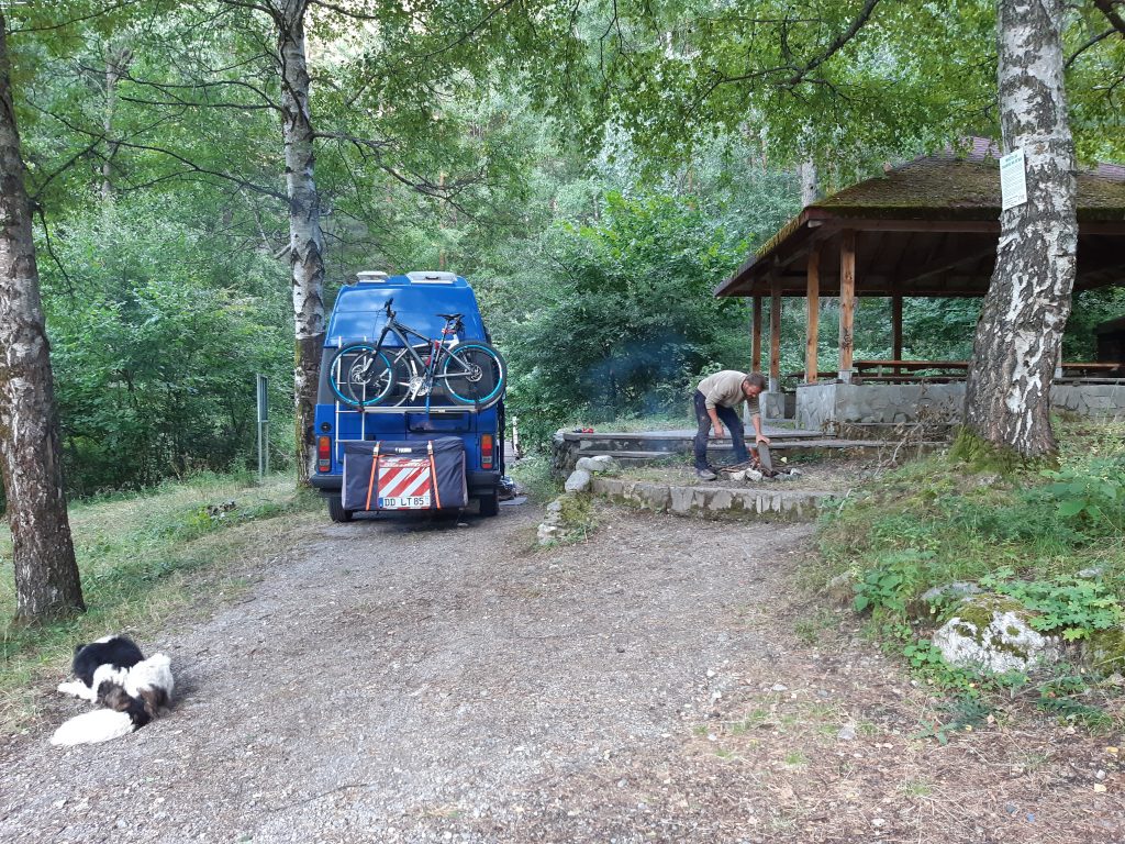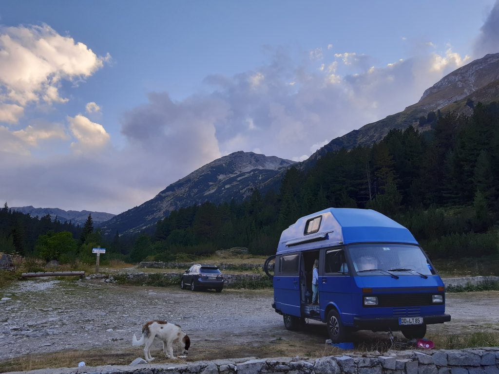 Eigentlich wollten wir einen Tag „pausieren“, da dieser Platz dazu aber nicht einlud, fuhren wir am Sonntag weiter und direkt rein und hoch ins Piringebirge. Nach 30 min bergauf tuckern, parkten wir auf 1800m unterhalb des zweithöchsten Berges Bulgariens (Vihren, 2914m) und stellten mit großer Freude fest, dass der Parkplatz auch gleichzeitig offizieller und dennoch kostenloser Campingplatz ist. Wir waren happy und uns sofort einig, dass wir genau da nächtigen werden.