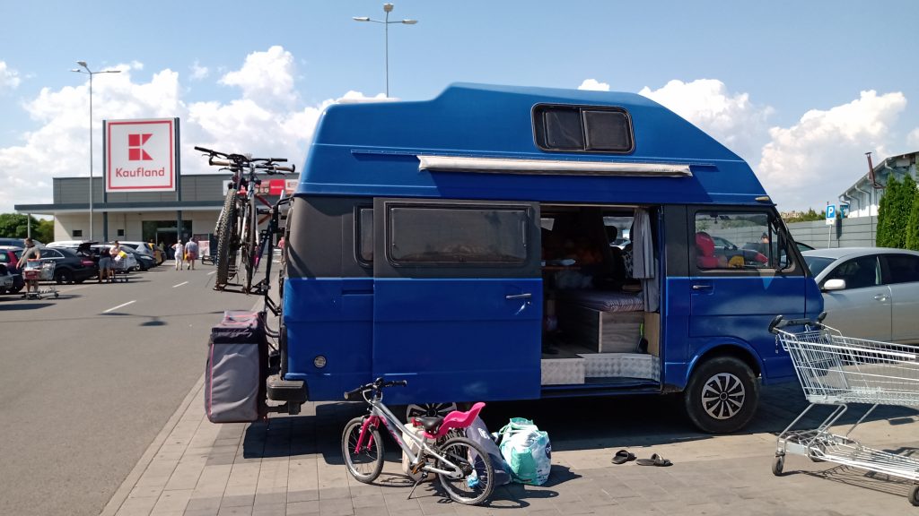 Gegen Mittag fuhren wir weiter nach Burgas und gingen dort unserem nun schon etablierten Kauflandritual nach. Etwa alle 2 Wochen richten wir es ein an einem Kaufland vorbeizukommen, um dort Großeinkauf zu machen. Kaufland ist hier in den Balkanländern gut aufgestellt und als hochwertiger Supermarkt zu sehen. Nach dem Einkauf kochen und essen wir gleich noch auf dem Parkplatz, z.B. Fischstäbchen, die wir so sonst nicht machen, da wir keine Lagerungsmöglichkeit dafür haben.