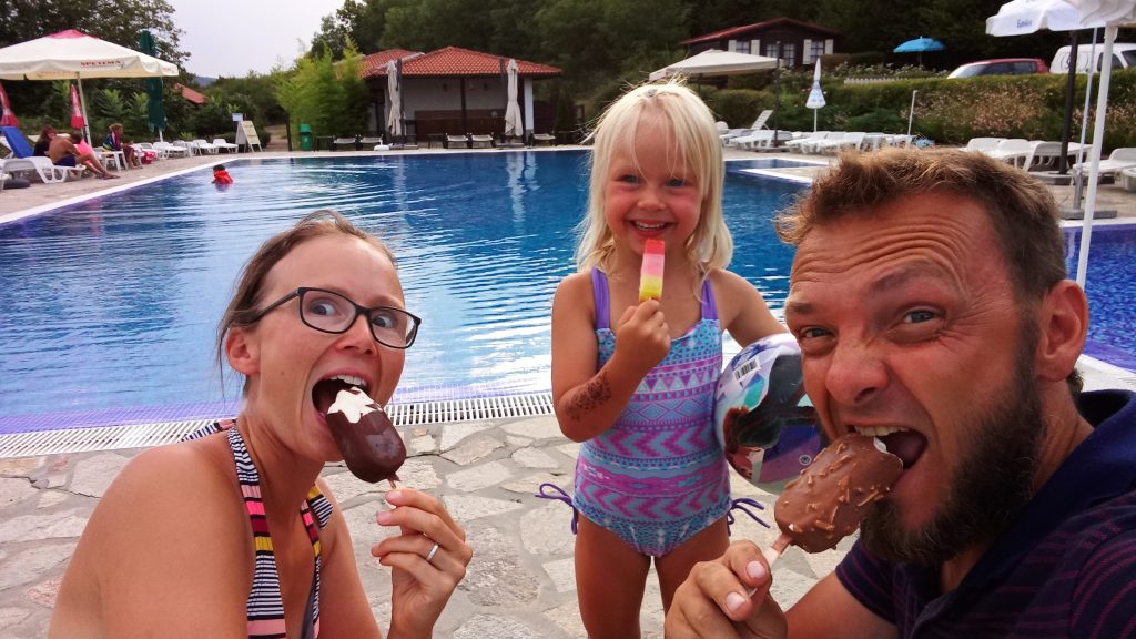 Entspannung pur genossen wir am Dienstag und Mittwoch im Thermalcamping Velingrad. Mehrere Pools, gespeist von den in der Region vorherrschenden Thermalquellen, Sauna, Indoor- und Outdoorspielplatz, Essenslieferservice, Teestation u.v.m machten die Tage zu einem besonderen Aufenthalt. Dass das Wasser wirklich mineralisch war, beweisen Hanni’s Haare, die nach stundenlangem Tauchen nun einen leichten Grünstich haben 😅.