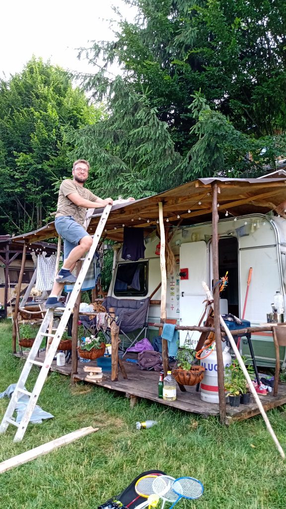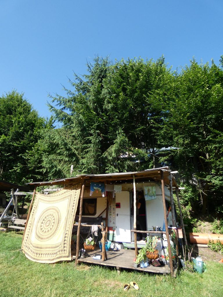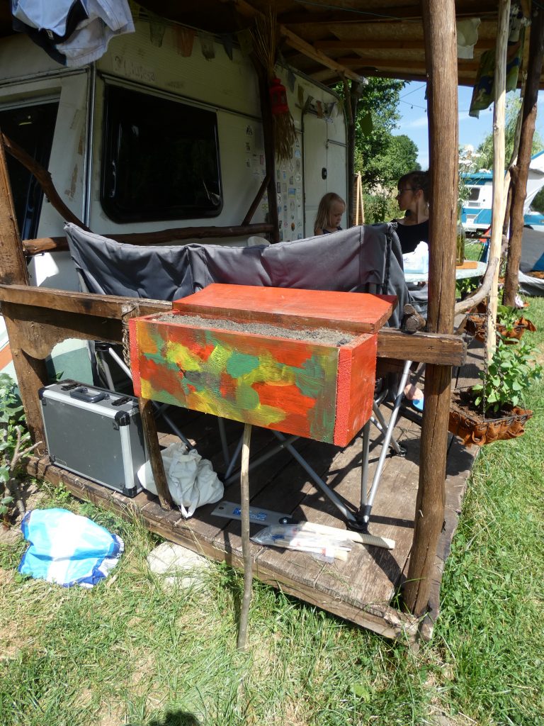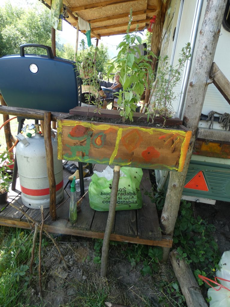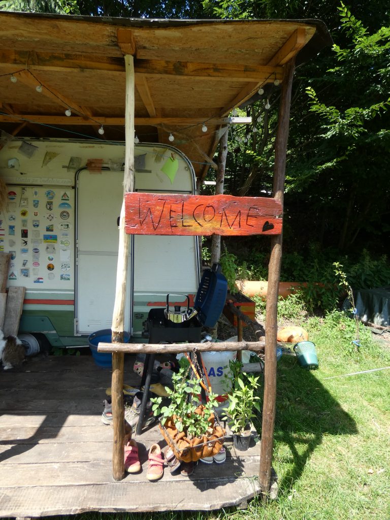 Der Wohnwagen in dem wir nun gerade beheimatet sind, wurde durch das Projekt „TurtlePower“ wieder per Solarpanel und Autobatterie mit Strom versorgt (Kommentar Sindy: „Wir brauchen keinen Strom, wir brauchen sauberes Wasser.“ Wird noch.) und im Zuge des Projektes „Blooming Roses“ mit hängenden Blumenhaltern und selbstgebauten Balkonkästen verschönert. Der Wohnwagen ist nun wirklich gemütlich und auch das Wasser fließt – allerdings mangels sauberen Wassertank noch nicht nutzbar und zudem zeitgleich aus der Dusche wenn man in der Küche das Wasser anstellt. Darum darf sich aber der nächste Gast kümmern :-).