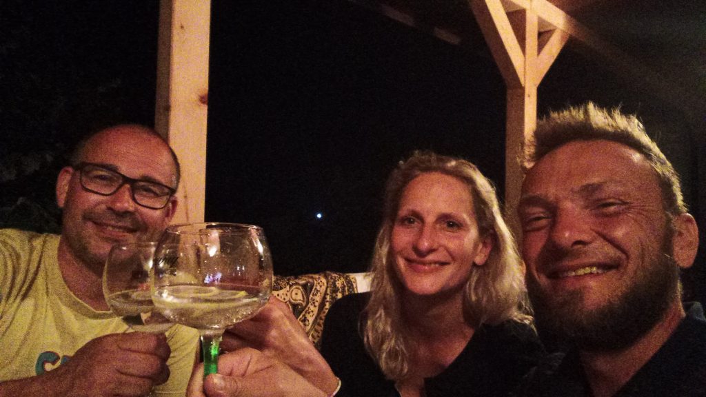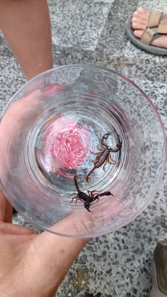 Das schien die beiden aber gar nicht zu stören und so saßen wir gemeinsam auf dem Balkon, tranken Tee und schwatzten über die Schönheit und scheinbaren Gefahren in Bulgarien (Stichwort „Zapp-Zarapp“). Mitten im Gespräch kam Micha plötzlich mit zwei Skorpionen im Glas aus dem Haus und meinte diese kamen gerade aus der Spüle gekrochen. Das kann hier schon mal passieren. Er kippte sie über den Balkon ins Gebüsch und schenkte sich kurz darauf seinen Tee in genau das Glas. Nemo Problema.