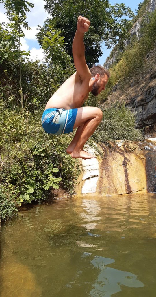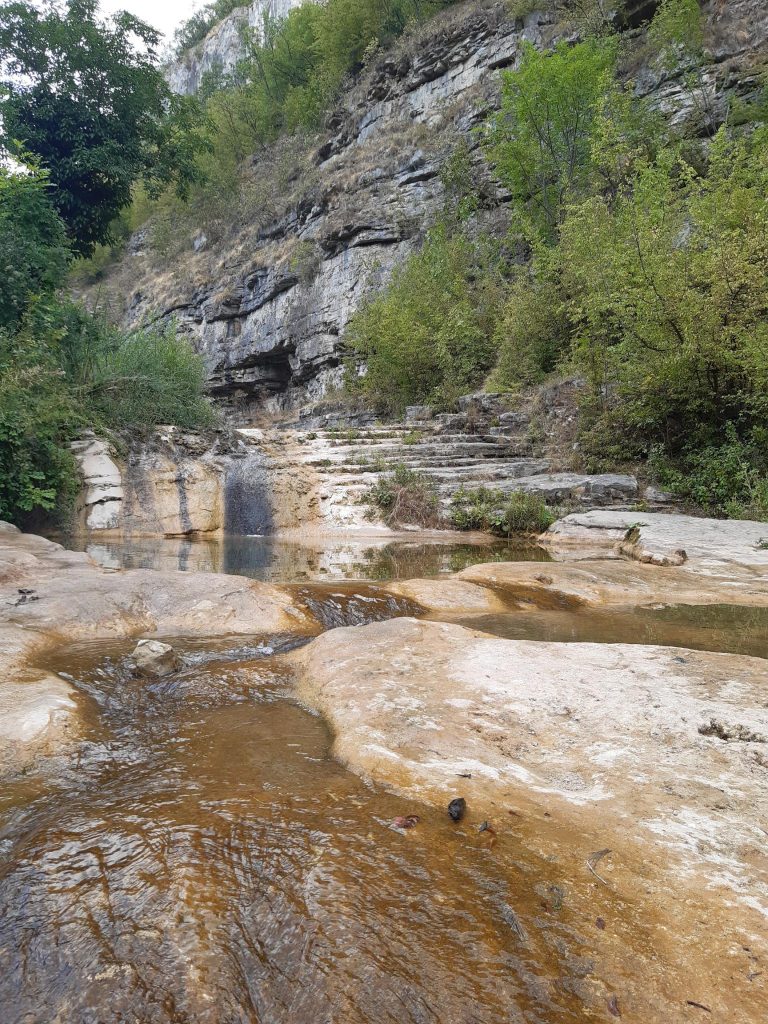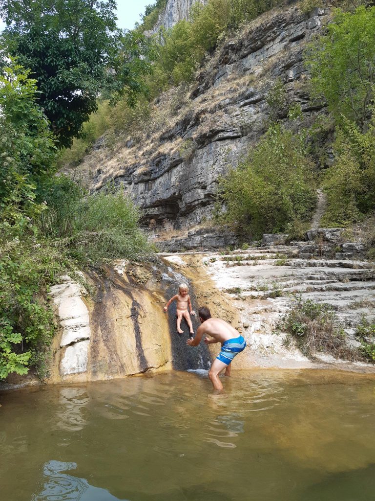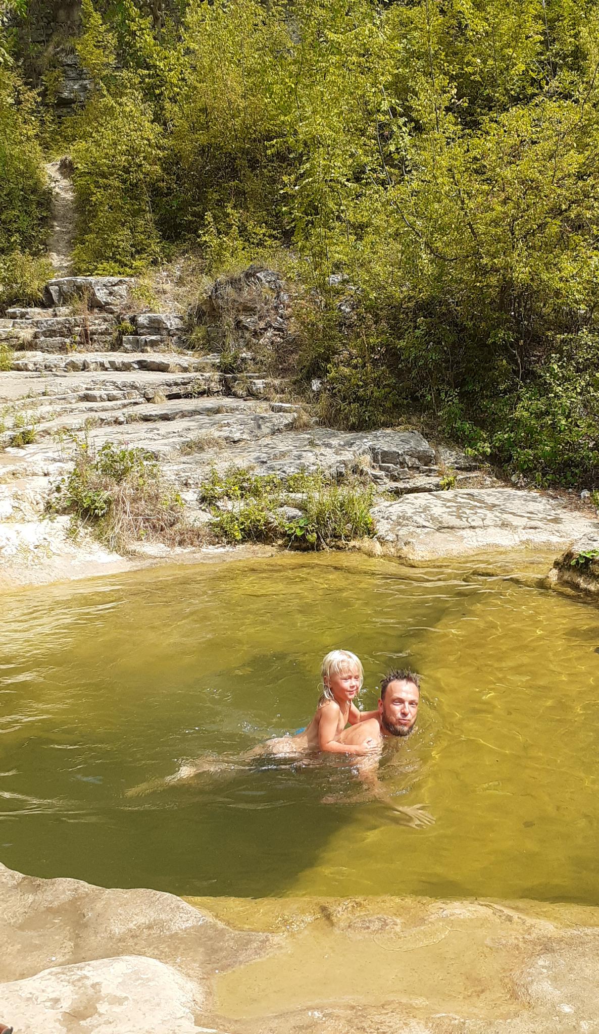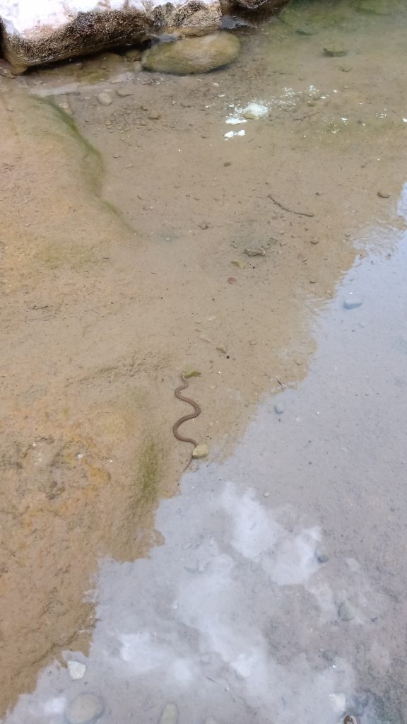 Nach kurzer Orientierungsphase am Fuße des Lakatnik begannen wir unseren Aufstieg entlang eines (derzeit) kleinen Flusses, der schon nach kurzer Zeit an idyllischen Naturbecken zum Planschen und Picknicken einlud. Das Wasser war herrlich kühl und wir teilten uns Becken inkl. Steinrutsche friedlich mit Kaulquappen, Fröschen, Wasserläufern und auch ein paar kleinen Schlangen.