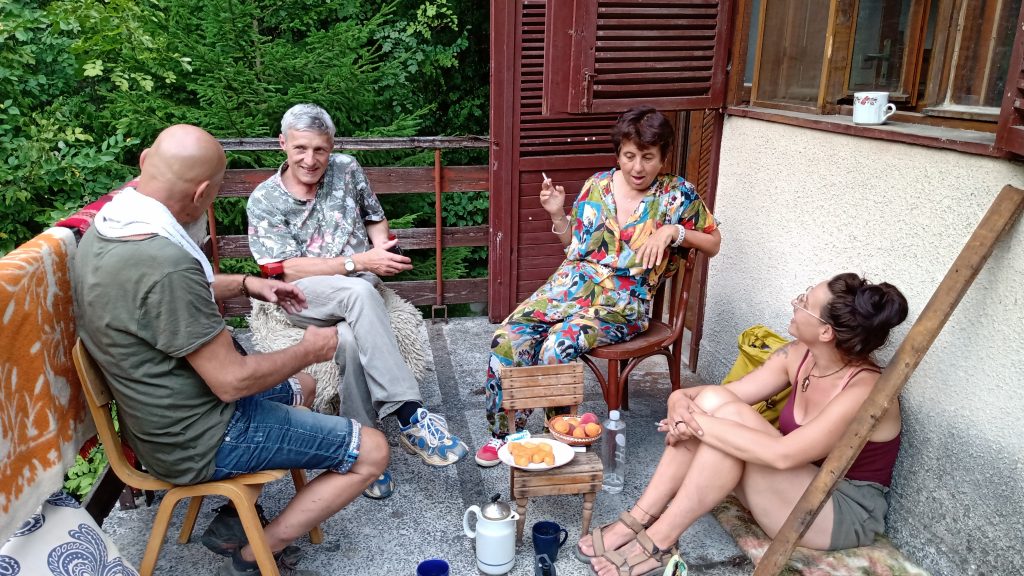 So verging die Wanderung in bester Laune, der auch die Erkenntnis, dass wir den gleichen Weg hinunter wie hinauf nehmen werden, keinen Abbruch tat. Im Gegenteil, wir nutzten noch einmal die Chance zur Erfrischung im Fluss und trafen kurz vor der Abfahrt auch noch das deutsch-bulgarische Pärchen Marina und Micha, die uns kurzerhand auf einen Tee in ihr kleines Häuschen am Wegesrand im Tal einluden. Die Begegnung war etwas bizarr. Die Dame war aufgeschlossen, witzig und gleichzeitig sehr vereinnahmend, der Herr Wissenschaftler redselig und ihr Häuschen durch längere Abwesenheit muffig und reparaturbedürftig.