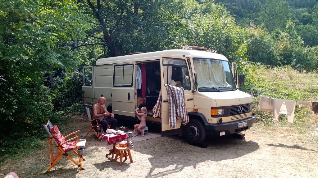 Ich tue dies am Fuße eines Berges im Balkan-Gebirge im kleinen Örtchen Zverino. Ich liege unten in unserem Luigi, es ist noch früh am morgen und meine Mädels schlafen noch oben in der ersten Etage. Es ist ein schönes Gefühl so nah beisammen zu sein und nun so viele Erinnerungen und Erfahrungen miteinander zu teilen. Ich versuche diesen Moment zu genießen und für immer abzuspeichern.