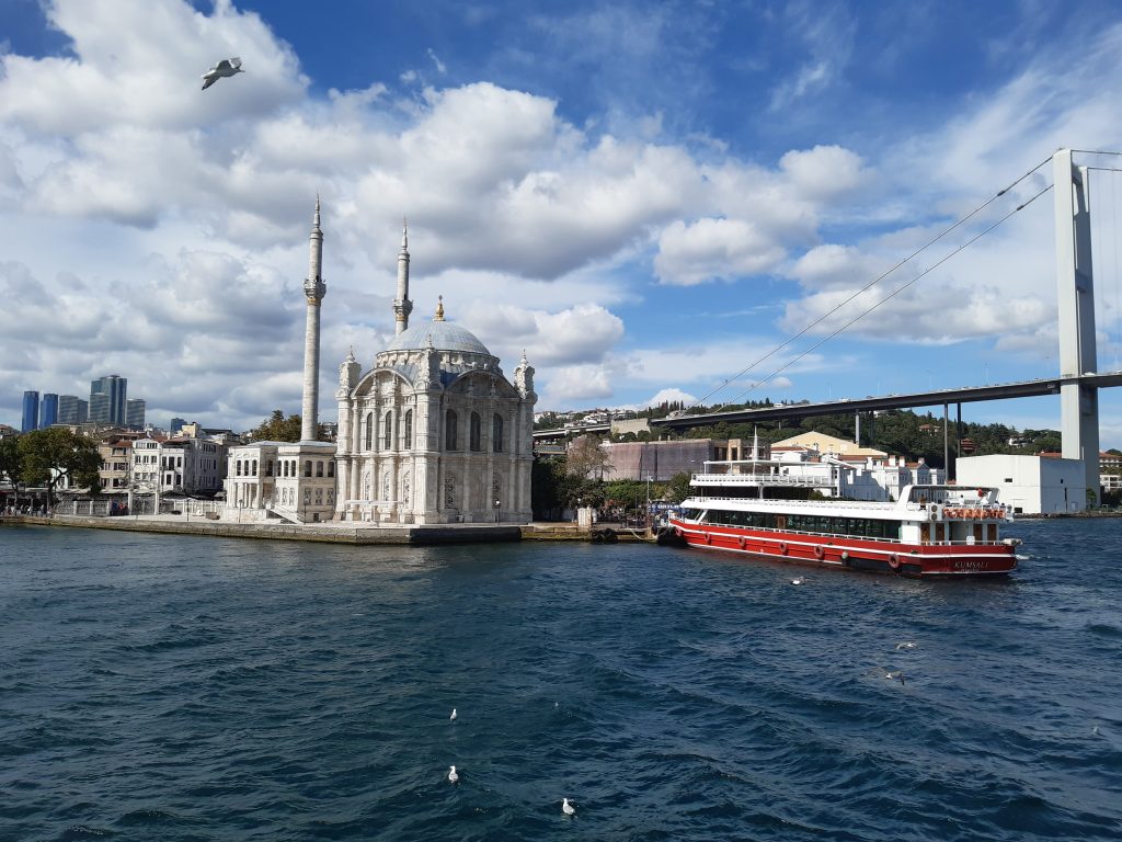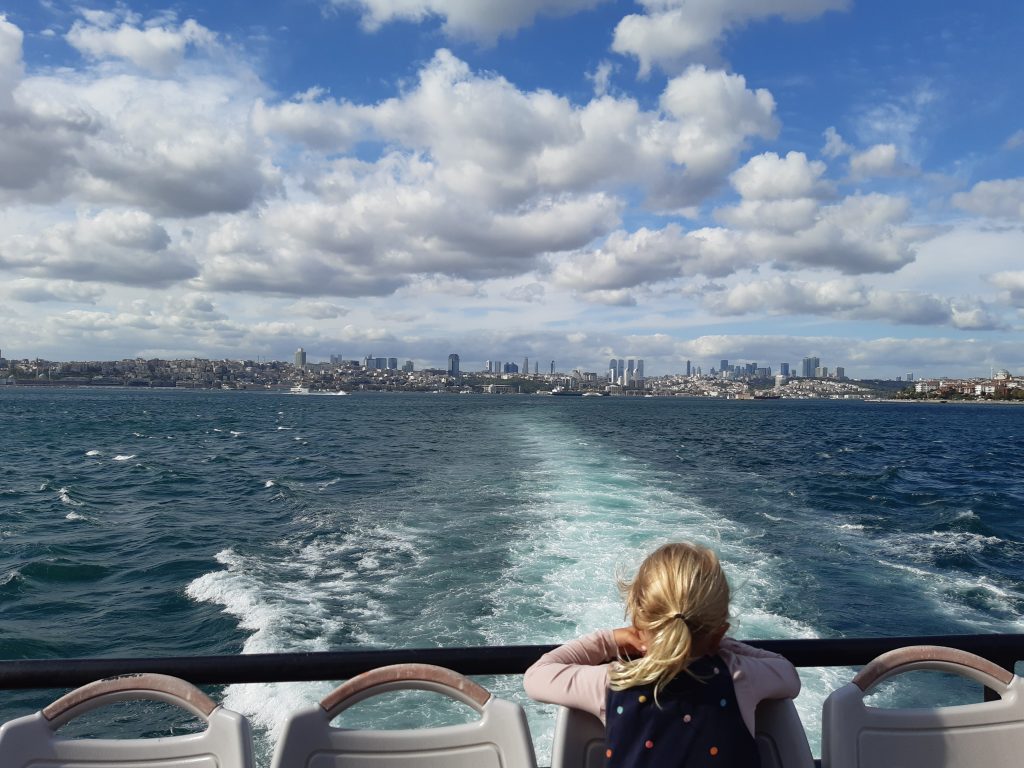 Und dann ist da noch der Bosporus sowie das Goldene Horn – der Bospurus trennt die Kontinente und damit auch die Stadt in den europäischen und den asiatischen Teil. Außerdem verbindet er das Marmarameer mit dem Schwarzen Meer. Das Goldene Horn trennt zudem den europäischen Teil in zwei Seiten. Über Fähren, Touristenschiffe, U-Bahn und Brücken sind alle drei Teile gut miteinander verbunden. Eine schöne Rundtour per Schiff auf dem Bosporus dauerte für uns etwa anderthalb Stunde und kostete 25 Lira (ca. 2.50 €) pro Person, wobei Hanni noch frei fuhr. Wir waren schlichtweg begeistert, von der Silhoutte der Stadt aber auch vom Preis.