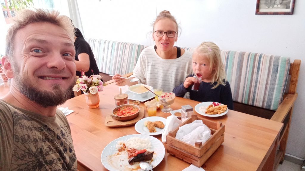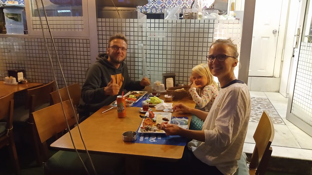 Wir haben trotz immer wieder neuer Umgebungen und Herausforderungen mit der Zeit gemeinsam gewisse Routinen entwickelt, die es uns mit jedem Tag der Reise leichter gemacht haben, irgendwo „anzukommen“. Wichtig ist, sich nach dem Ankommen etwas Zeit zu lassen (vor allem wenn die Realität mal wieder nicht genau mit den eigenen Vorstellungen übereinstimmt) und die Umgebung zu erkunden. Wenn es generell passt, kümmerte sich Hilbi um den Innenraum, ich mich um den Außenbereich und wenn es gut lief, spielte Hanni in dieser Zeit selbständig und/oder stellte sich schon mal überall (vor allem wenn sie Deutsche entdeckt) vor: „Hallo, ich bin Hannah und ich bin Fünfeinhalb.“.