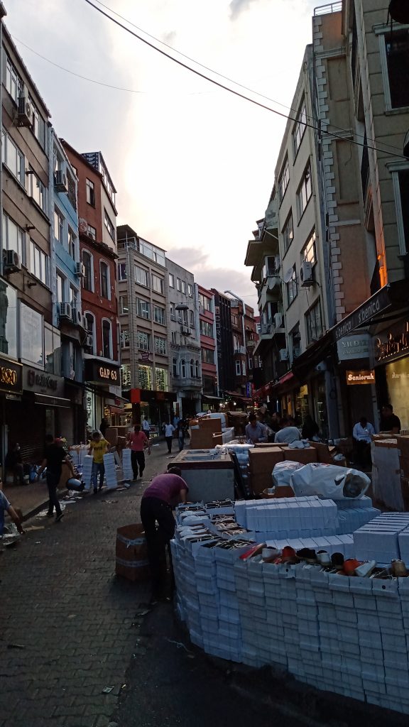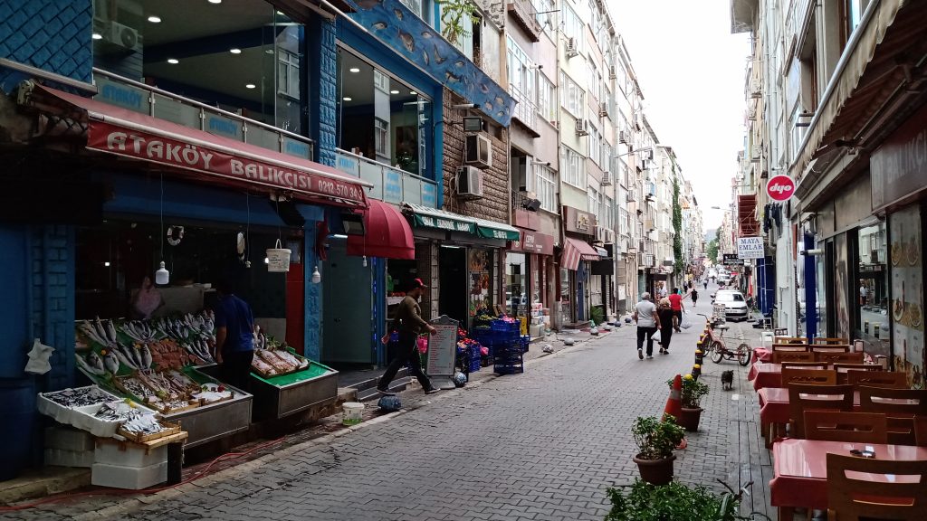 Unser Wohnbezirk namens Bakırköy ist ein echter Glücksfall für uns. Etwas Abseits von den Touristenzentren wohnen wir mitten unter dem hiesigen Mittelstand. Es geht ruhig und gemütlich zu: es gibt viele kleine Läden, vor denen oft die Besitzer mit ihren Kunden sitzen, den typisch türkischen Tee trinken und palavern. Dazu wird geraucht als ob es kein Morgen gäbe – Alkohol trinkende Menschen sieht man hingegen nur sehr vereinzelt.