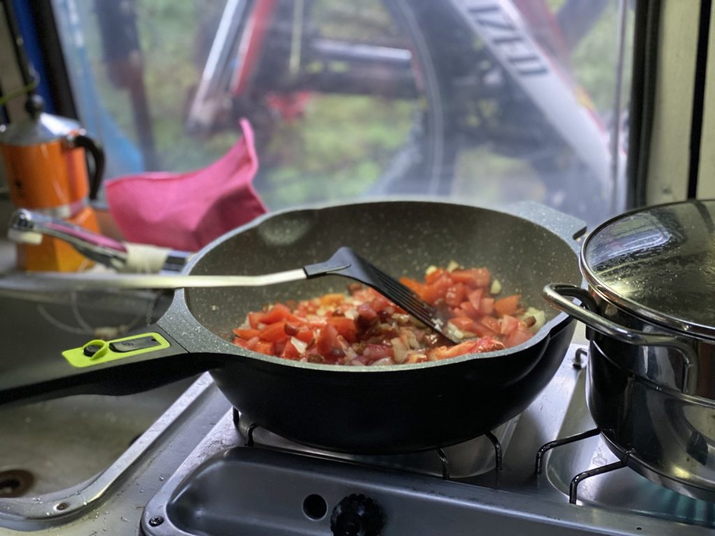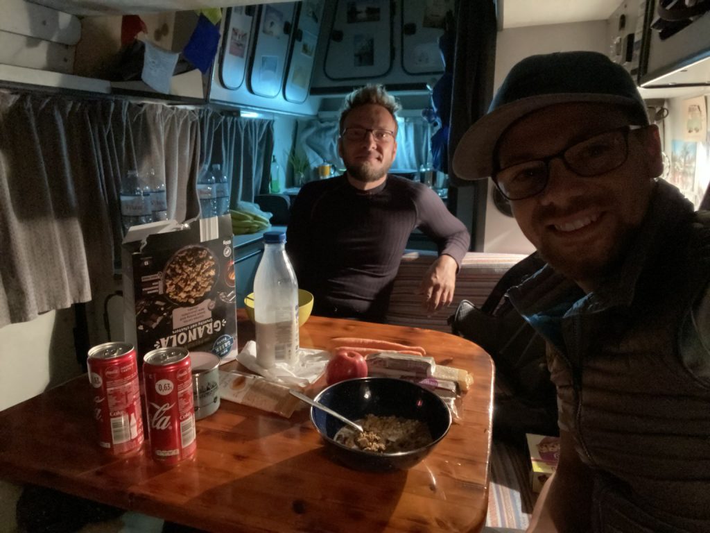 Nachdem wir uns verabschiedet hatten, ging es zurück durchs das Balkangebirge bis zu einer wunderbaren Stelle an einem Nebenfluss der Iskar. An solchen Stellen mit solchen Menschen macht Wildcamping richtig Freude! Wir kochten ein leckeres Abendessen – es gab Zucchini-Kartoffel-Suppe und Polenta mit Spiegelei – und verbrachten den Abend entspannt am Lagerfeuer.