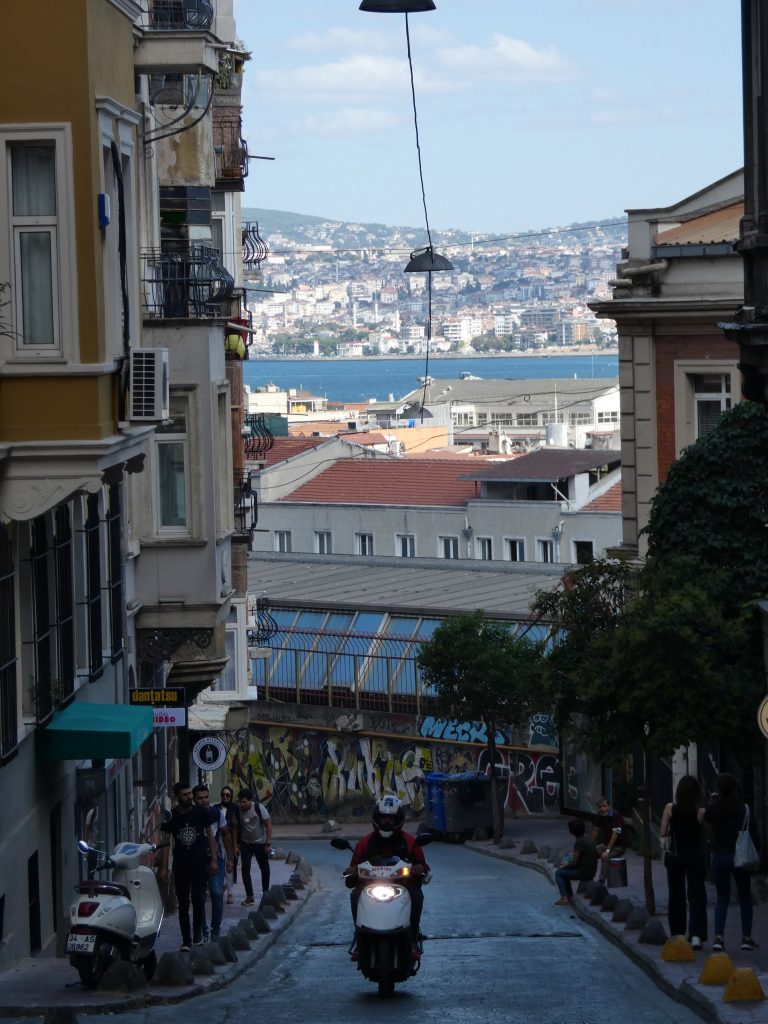 Es gibt unzählig viele Stadtteile, Altstädte, Kulturzentren, Einkaufspassagen, Uferpromenaden…und das alles in verschiedenen Ausprägungen, eingebettet in sieben Hügel und miteinander durch von Grün durchwebten Wohngebieten verbunden. Ca. 15 Millionen Menschen leben hier, hinzu kommen einige Millionen Touristen und hunderttausende Katzen (dies ist so besonders, daß wir ihnen einen extra Blogeintrag widmen werden). Nochmal: es ist kaum fassbar. In den Zentren ist es voll, laut und pulsierend. Abseits der Hauptwege findet man aber auch ruhigere und ebenfalls interessante Gassen. Überall sieht man Geschäfte, Restaurants, Essenstände, Autos, Menschen, türkische Fahnen und Abbildungen von Atatürk. Erdogan ist (bisher) für unsere Wahrnehmung eher unterrepräsentiert.