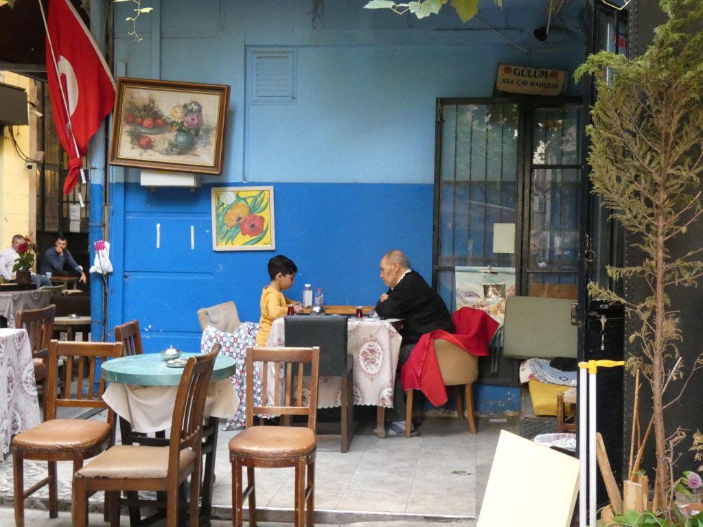 Auch hier ist natürlich und bekanntlich nicht alles in bester Ordnung. Jans neue Kumpels von der Teestube gegenüber fragten, ob die Preise hier für uns niedrig sind. Und das sind sie auf jeden Fall! In den letzten Jahren haben sich die Preise hier wohl verdreifacht und gleichzeitig steckt die Türkei in politischen und wirtschaftlichen Krisen. Viele Menschen sind arbeitlos oder verdienen nur sehr wenig. Auf die Frage nach meiner Religion antworte ich zaghaft aber wahrheitsgemäß: „Atheist“ und ernte wieder erwarten freudige Gesichter und etliche „Fäuste“. Zumindest in der Teestube sind nach eigener Aussage viele Schamanen und bieten mir sofort ihren Zaubertrank, süßen dicken Maulbeersaft („Trank von Asterix“), an. Zur Krönung kommt noch ein Derwisch hinein, er kommt direkt von „oben“ und verwickelt mich sofort in ein Gespräch, dessen Inhalt ich aber nicht wirklich verstehe. Es geht natürlich um Jesus & Co. und alle amüsieren sich köstlich.